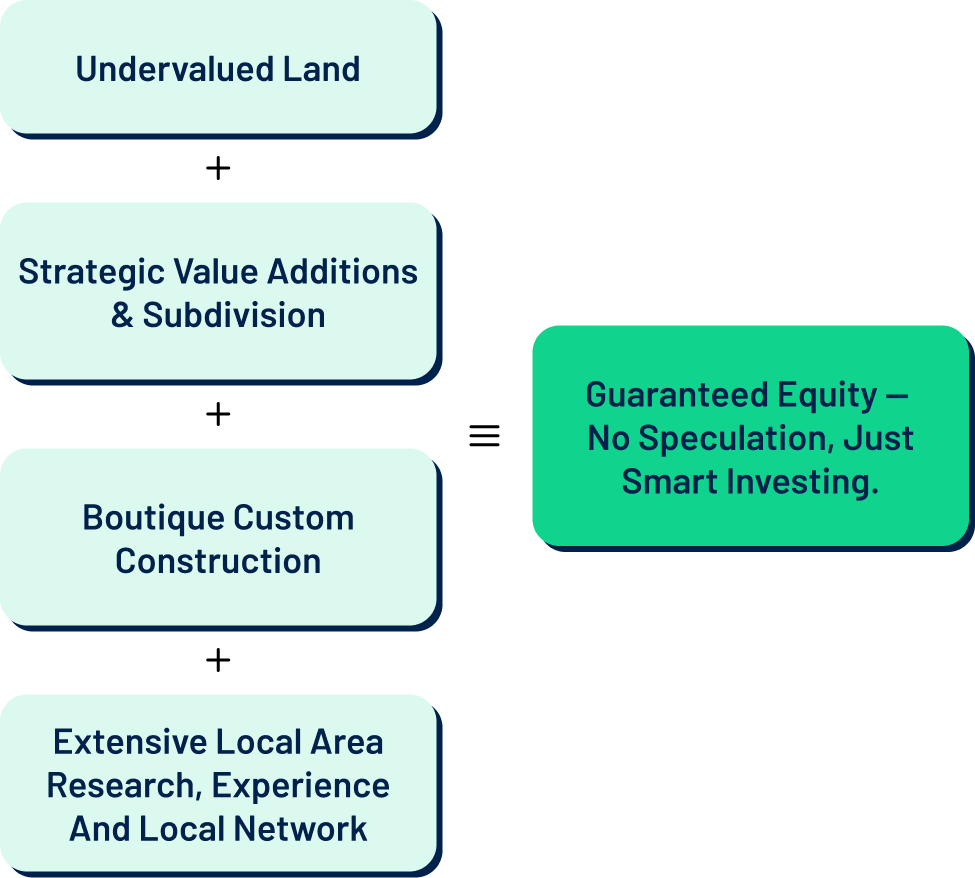 To help Australians build wealth quickly and securely by adding value to under-market land in high- demand areas—creating equity without speculation